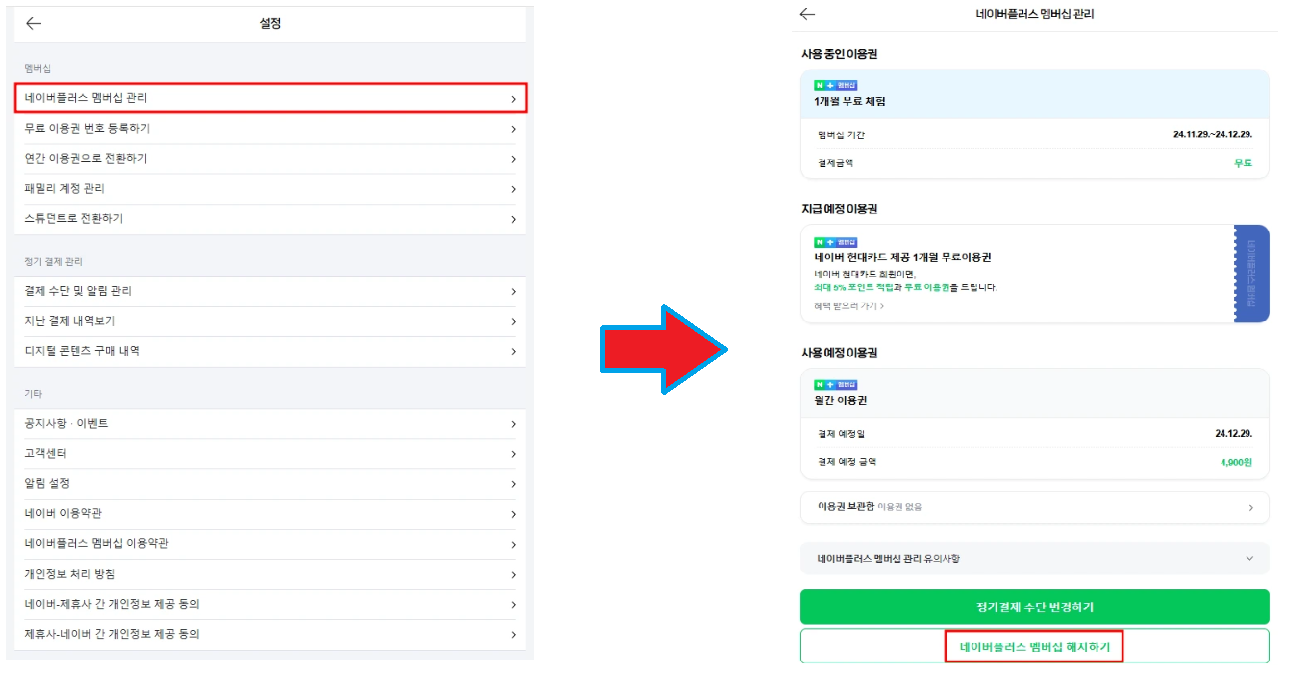 - 네이버플러스 멤버십 관리를 클릭한다.