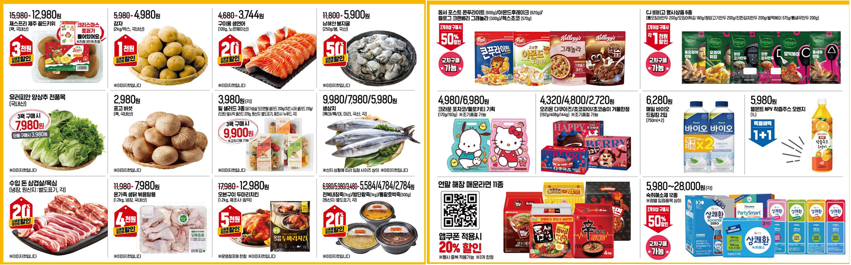 물가가 많이 오른 2024년 롯데마트와 홈플러스에서도 세일 상품을 확인하고 저렴하게 구매할 수 있어요.