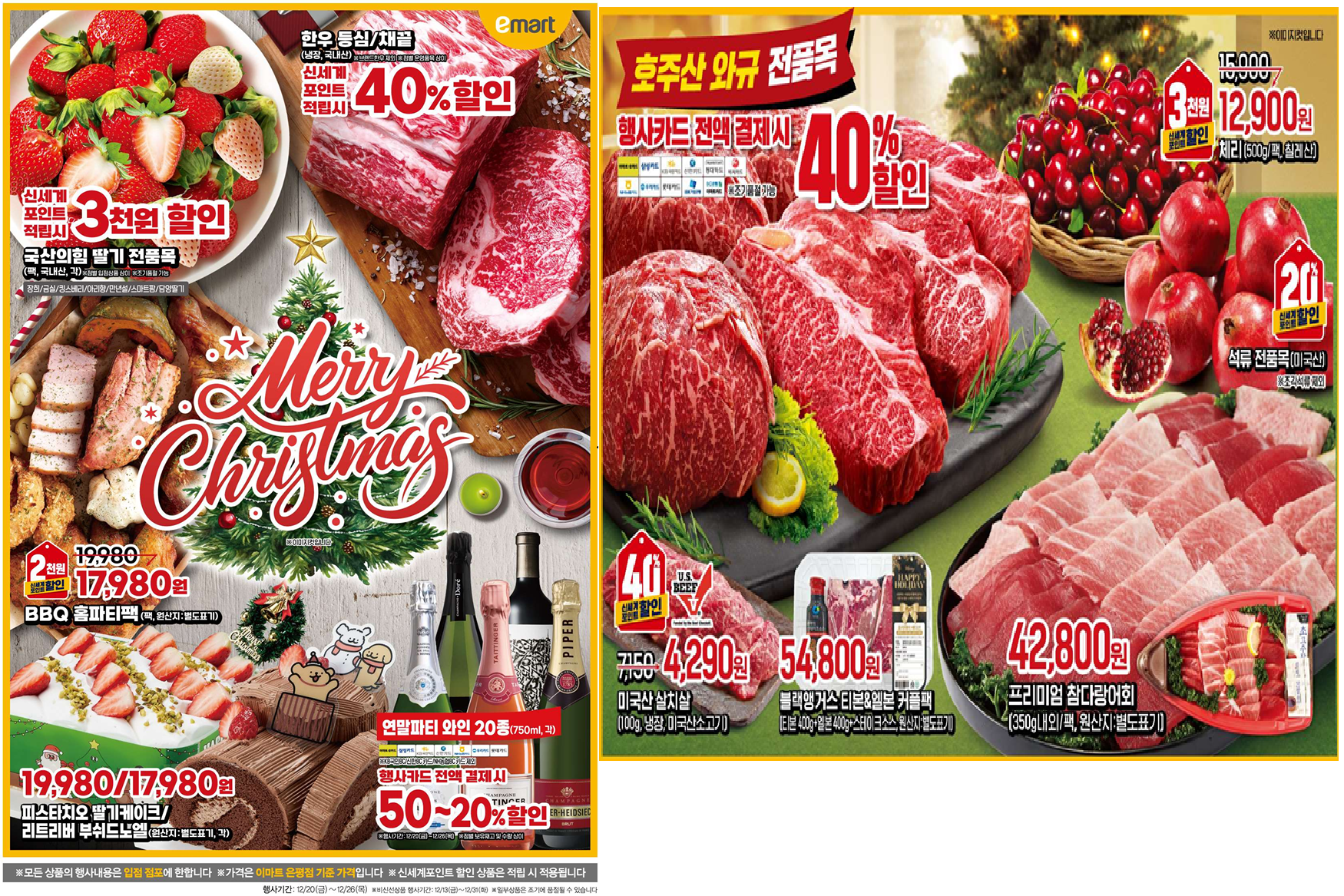 한우 등심/채끝 40%할인, 딸기, 연말파티 와인 20종 등 할인 행사하는 물품들이 많으니 여러분들의 지갑을 지켜주세요.
